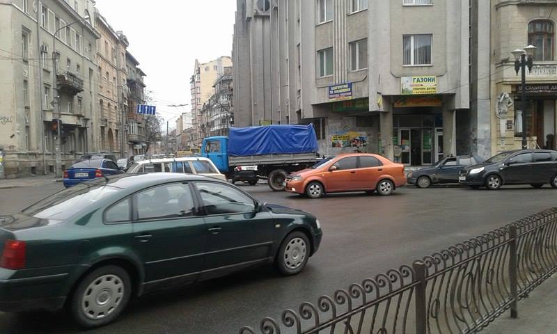 Через поламану вантажівку в середмісті Франківська транспортний хаос