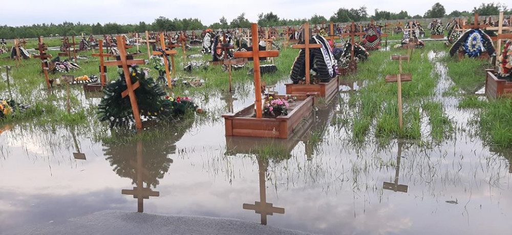 Сильні зливи затопили нову частину міського кладовища Івано-Франківська.