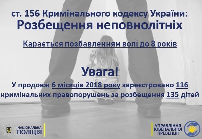 Проблема вчинення злочинів на сексуальному грунті щодо дітей, в тому числі й розбещення неповнолітніх, на жаль, не оминула й Прикарпаття. Від початку цього року від таких злочинів на Івано-Франківщині вже потерпіло 8 дітей, зокрема щодо 4 було вчинено розпусні дії