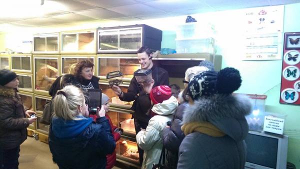 Директор Громадської Спілки "Українська екологічна природозахисна спілка "Орден Саламандри" Михайло Королик, розповів багато цікавого про своїх “підопічних”, відповідав на численні запитання діточок та навіть подарував сувенір – зміїну шкіру.