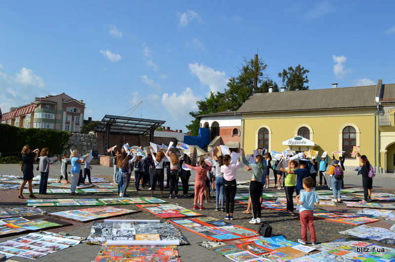 Як обіцяли організатори, виставка була миттєвою. Після початку флешмобу, юні франківці підняли з бруківки свої роботи та прочитали "Отче наш".