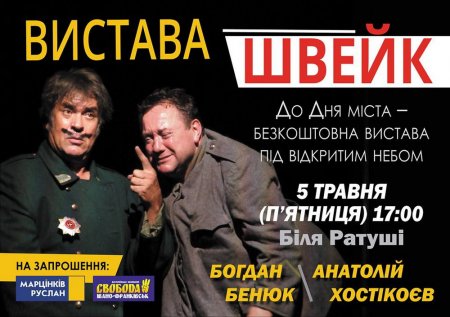 5 травня о 17:00 на площі перед Ратушею відбудеться безкоштовна вистава "Швейк" під відкритим небом