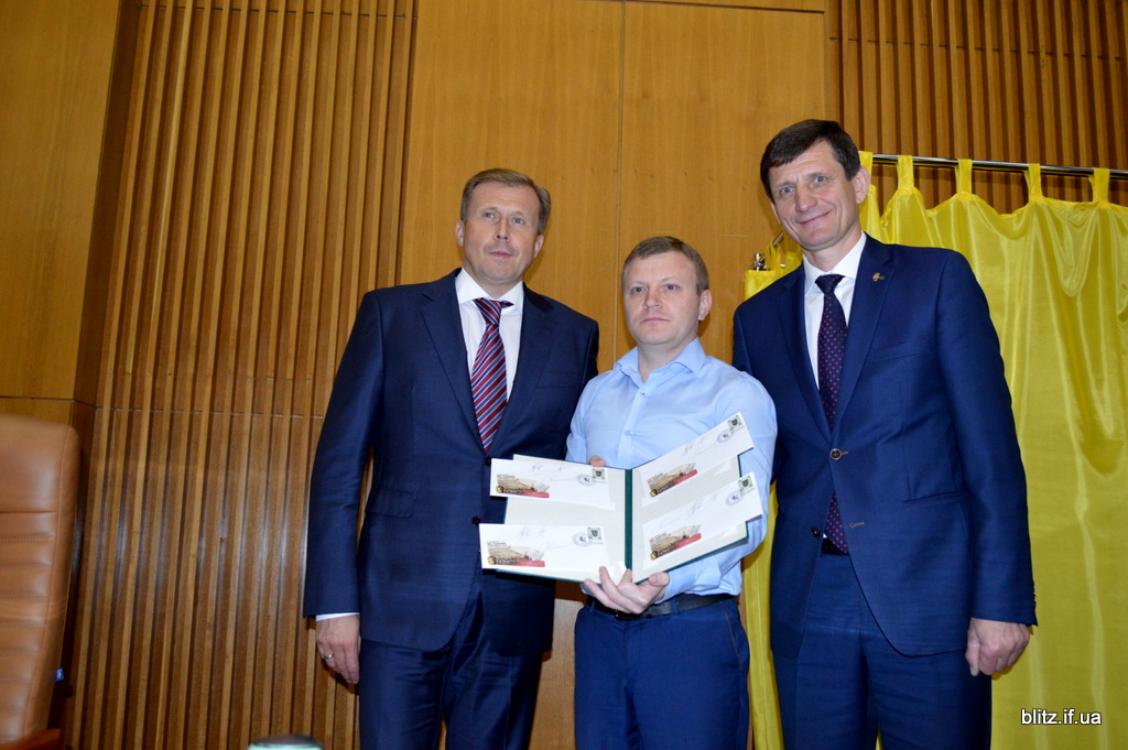 На завершення святкової сесії голова обласної ради Олександр Сич, голова ОДА Олег Гончарук спеціально виготовленим штемпелем урочисто погасили маркований конверт, присвячений 100-річчю ЗУНР.