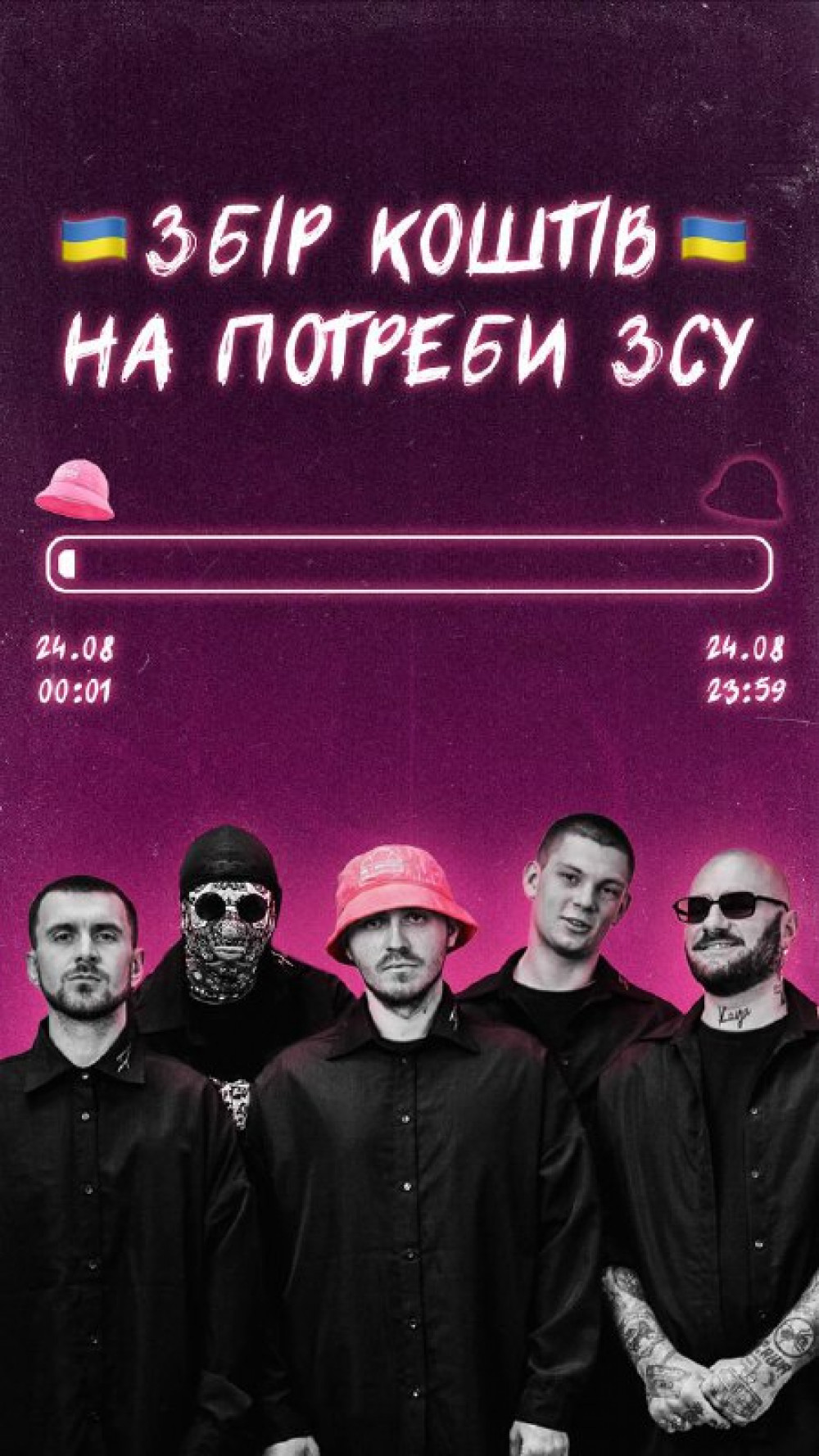 “Ми подумали, що це вдала магія чисел: 24 серпня, 24 години, 24 гривні. Таку суму може собі дозволити будь-який українець, як всередині країни, так і за її межами. Ну а обмежений час ми запроваджуємо задля того, аби підігріти людей встигнути зробити свій вклад у цю велику справу”, – розповідає про акцію фронтмен гурту Олег Псюк.