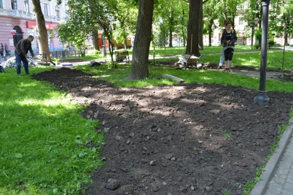 "В цьому сквері люди самі протоптали доріжку. Відповідно, там немає трави, і мешканці йдуть болотом" – зазначив Михайло Смушак.