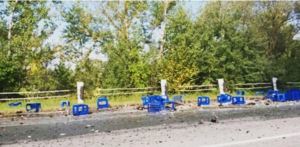 На Прикарпатті, біля заправки на дорогу з фури висипалися пляшки з пивом.