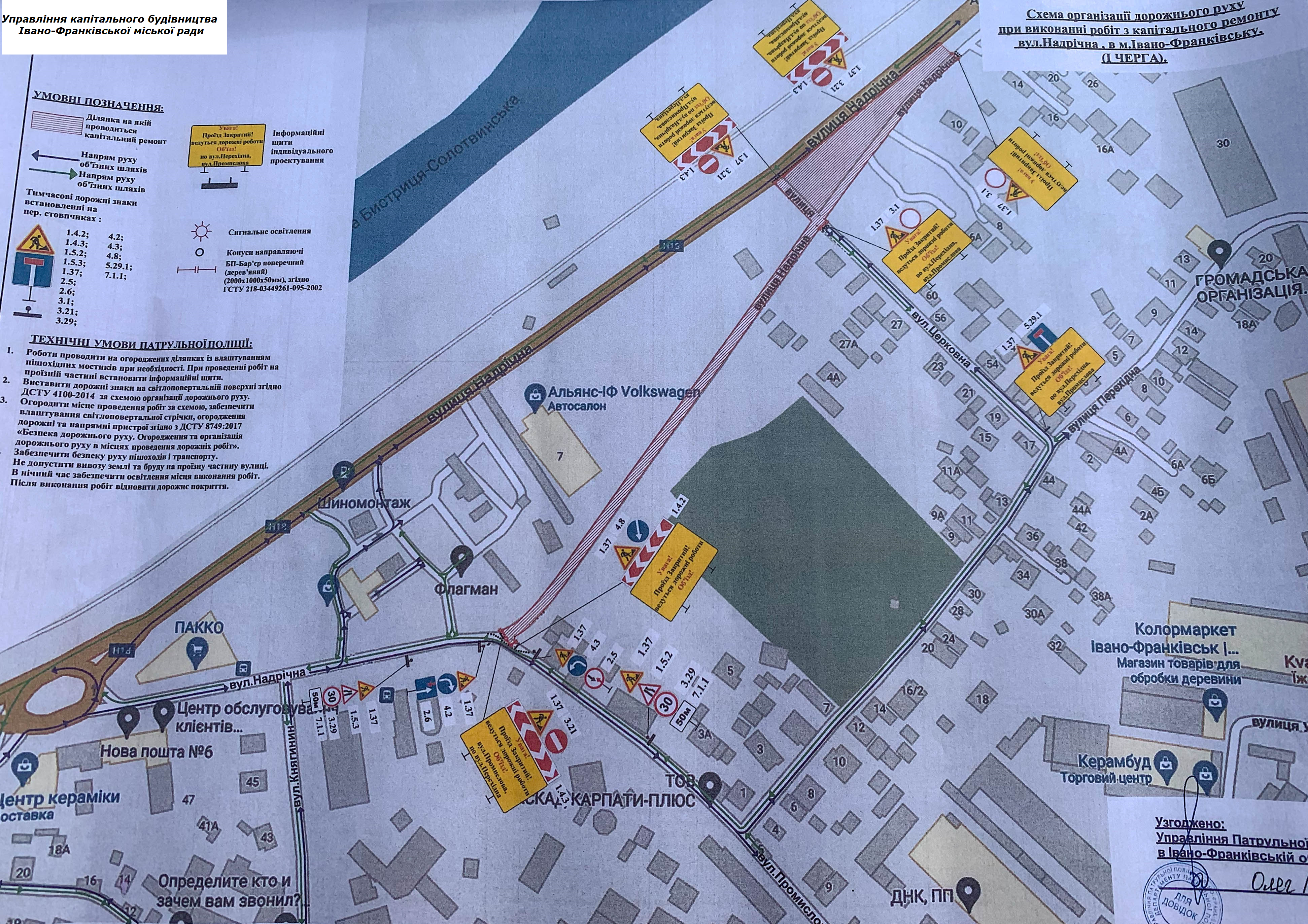 Задля проведення робіт, що розділені на три черги, спільно з Управлінням патрульної поліції Івано-Франківської області та підрядником, розроблено та погоджено відповідну схему організації дорожнього руху.