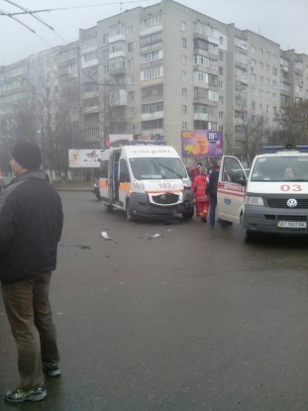 ДТП в Івано-Франківську: Не розминулись іномарка, швидка та маршрутка