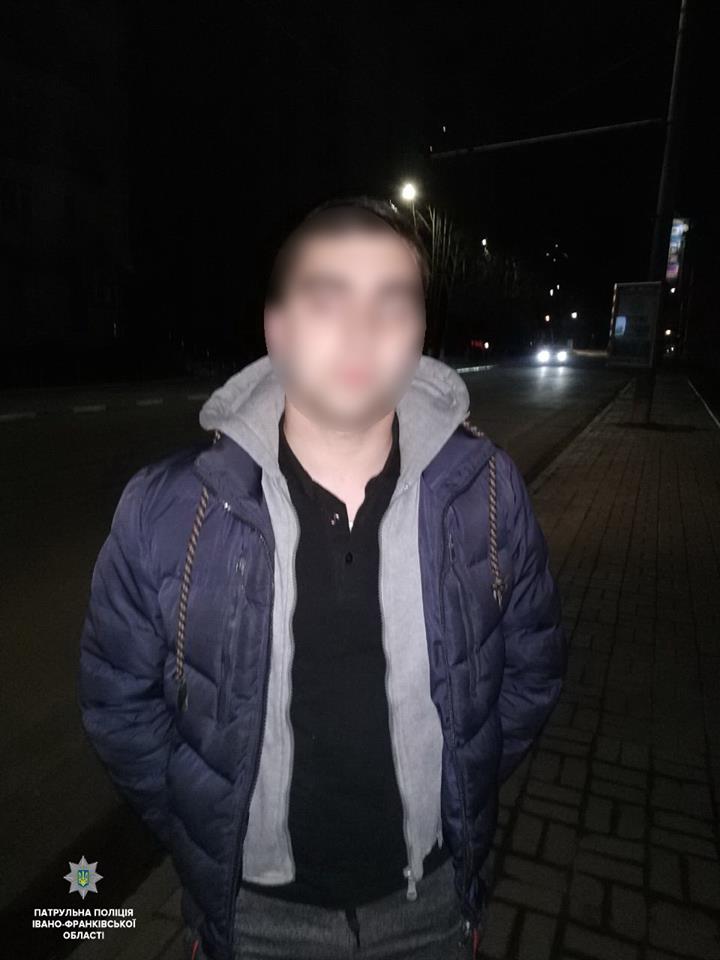 Близько четвертої години ранку 8 березня на вулиці Мельника патрульні звернули увагу на двох хлопців. Зрозумівши, що увага поліцейських прикута до них, юнаки спробували уникнути зустрічі, чим ще більше зацікавили патрульних. Про це інформує прес-служба патрульної поліції Івано-Франківщини.