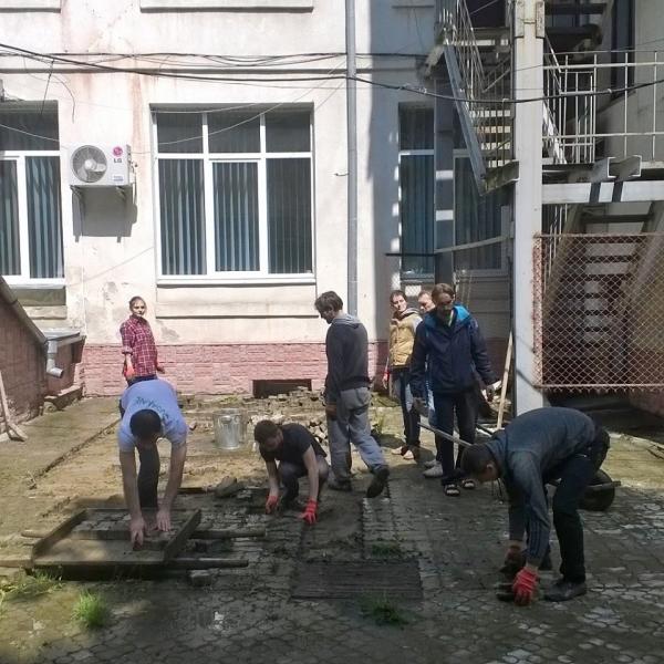 Сьогодні активісти тільки прибрали двір, та де-не-де зняли бруківку. А всіх охочих активісти запрошують долучитися наступного тижня.