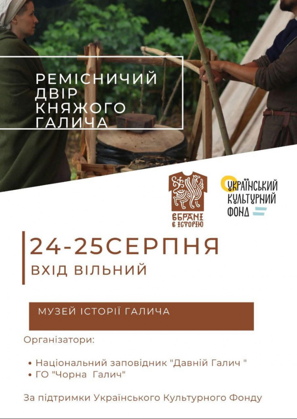 24-25 серпня відбудеться середньовічний табір «Ремісничий двір княжого Галича» в Музеї історії Національного заповідника «Давній Галич» із залученням клубу історичної реконструкції «Чорна Галич».