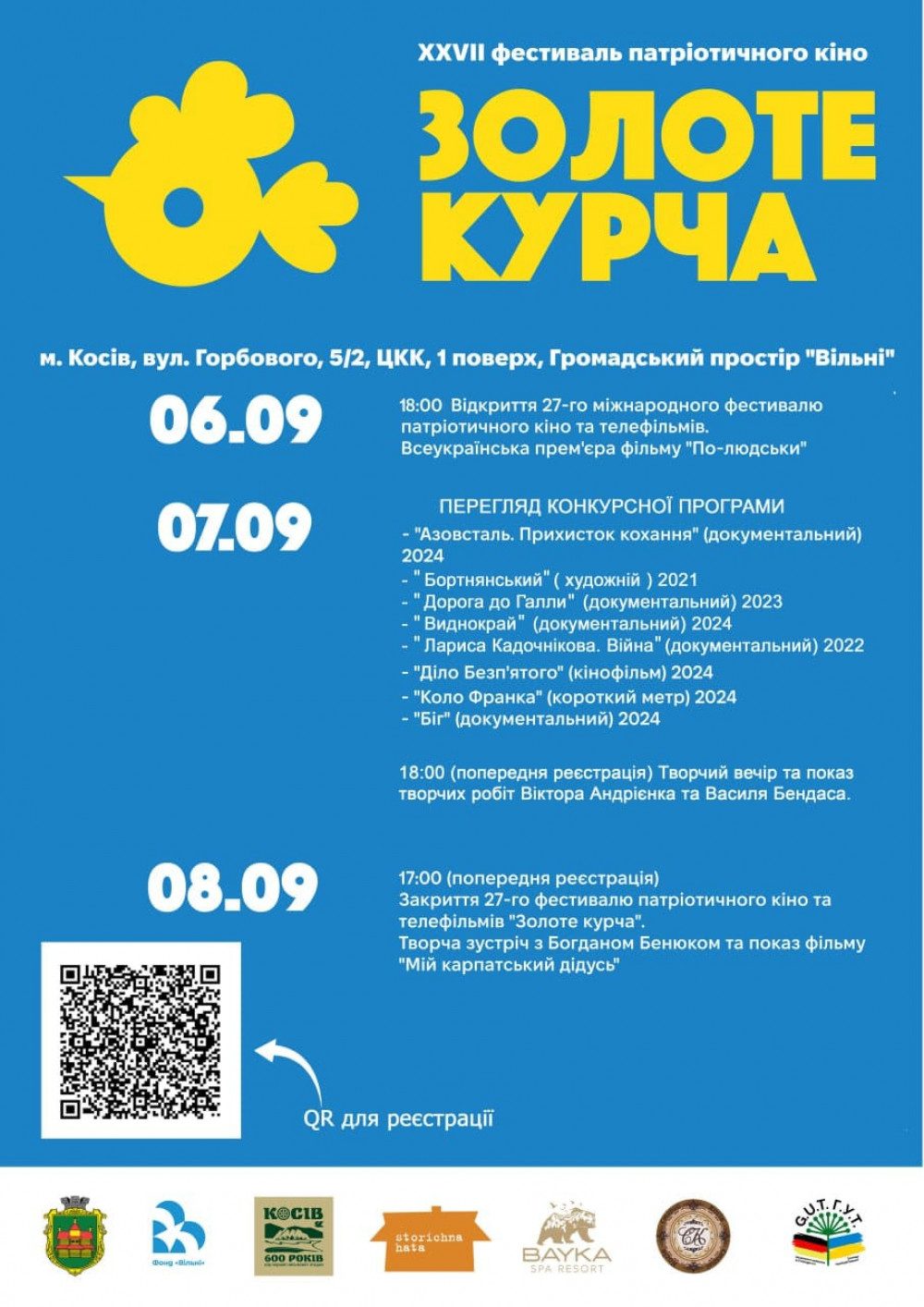 Протягом трьох днів, з 6 по 8 вересня, в Косові проходитиме ХVII міжнародний фестиваль патріотичного кіно та телефільмів "Золоте Курча"!