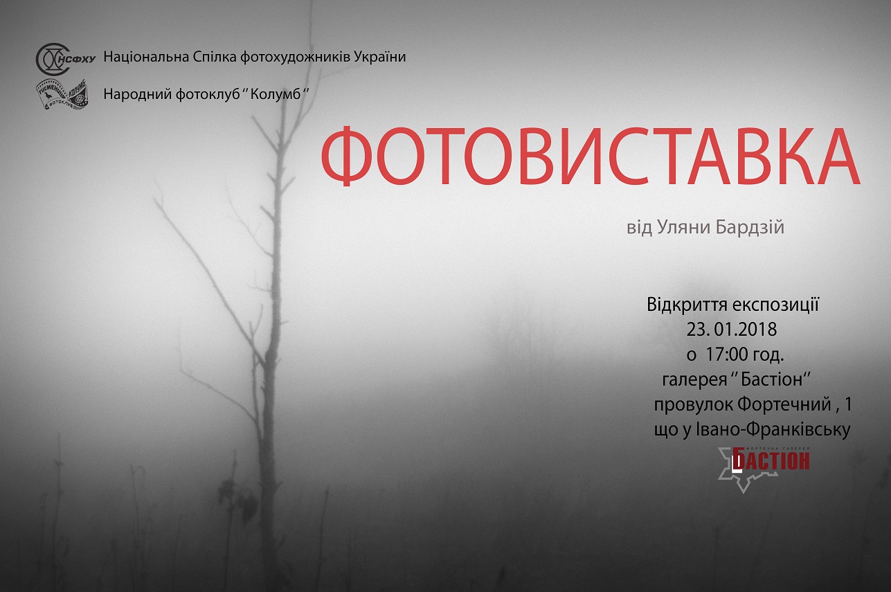 23 січня в Івано-Франківську відбудеться відкриття фотовиставки Уляни Бардзій. Початок о 17.00 в галереї "Бастіон" за адресою: провулок Фортечний 1, Івано-Франківськ