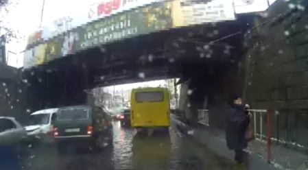 Мешканка Івано-Франківська хотіла обійти ремонт по дорозі, проте через великий рух транспорту злякалась і не знала що робити далі. Врятував жінку патрульний, який в це час їхав по дорозі.