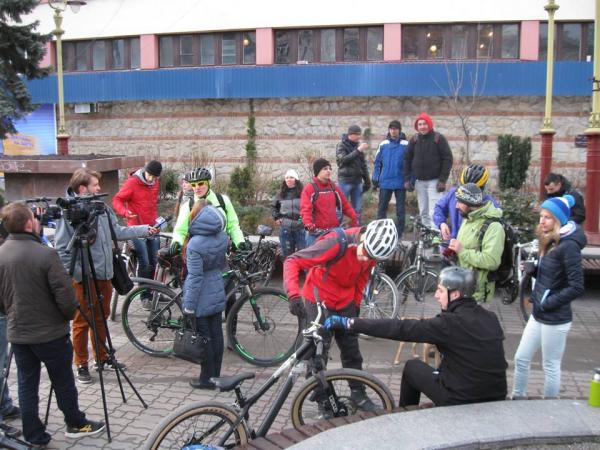 З самого ранку десятки франківців зібралися біля фонтану, що на Вічевому Майдані. З гарним настроєм і веселощами активні франківці довели, що зима не перешкода для їзди на велосипеді.