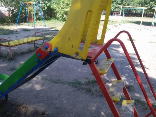 Проте, нажаль не всі дитячі майданчики в місті знаходяться в хорошому стані. Саме на аварійний стан гірки для діточок скаржиться молода мама Христина Дудяк.