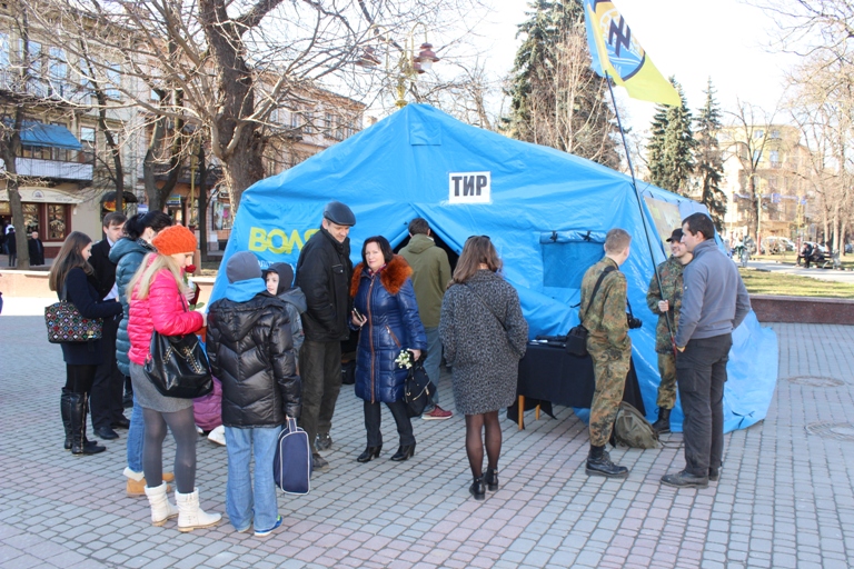 Таку акцію провели активісти міської організації партії «Воля» та Громадянського корпусу полку «Азов» з метою зібрати кошти на потреби бійців АТО.