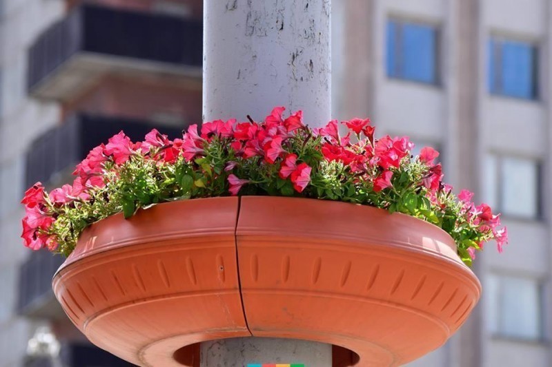 В Івано-Франківську невідомі почали красти квіти, які висаджені у термочашах на електроопорах.