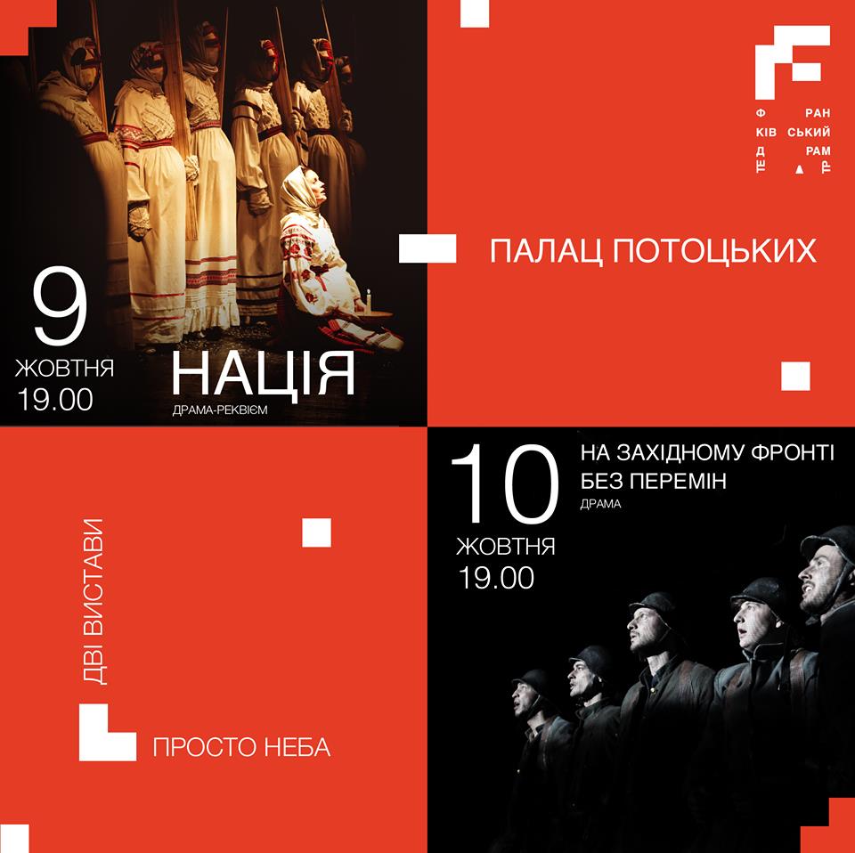 Це дві унікальні можливості побачити і відчути знамениті камерні вистави не в оточенні куліс і театральних стін, а просто неба (хоча місця для глядачів передбачені в зоні під тентами) у Палаці Потоцьких «Простір Інноваційних Креацій «Палац».