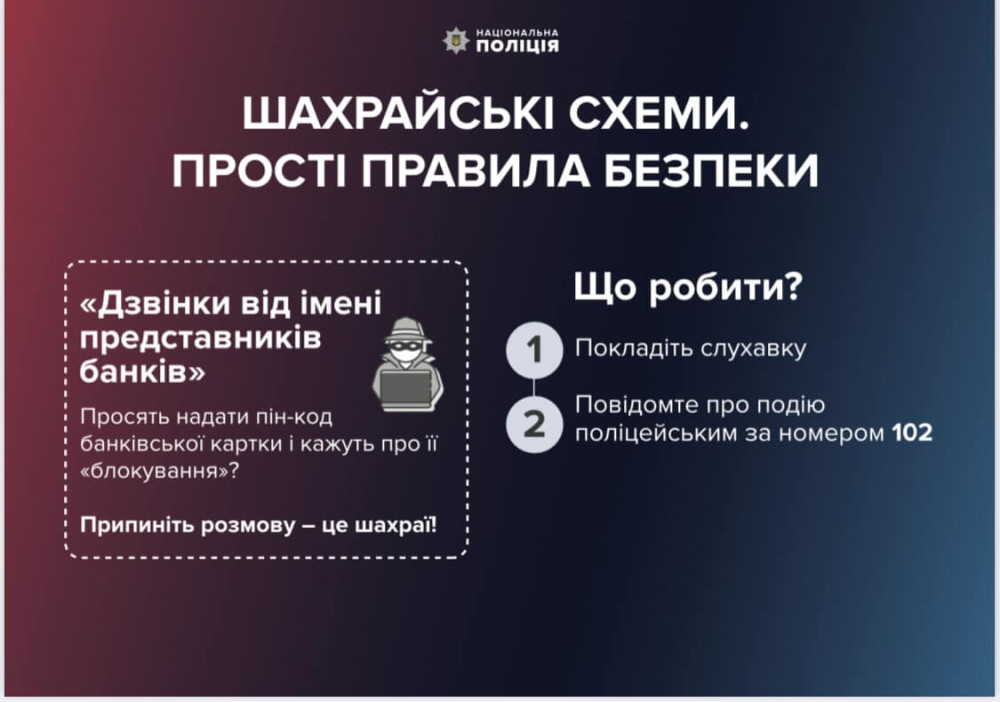 - за вказівкою невідомих осіб не здійснювати жодних банківських операцій, тим більше у телефонному режимі;