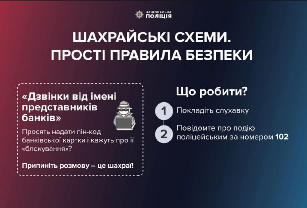 якщо висувають умову, що для виконання певних дій потрібно повідомити пін-код вашої картки або одноразовий пароль з SMS-повідомлення - негайно завершуйте розмову. Це шахрай!