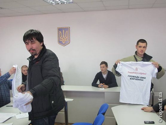 Тому сьогодні на Координаційну раду представник Правого сектору Андрій Подільський приніс відповідні футболки.