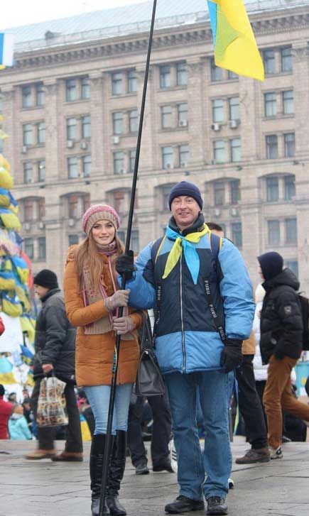 "Міс Україна–2013" Ганна Заячківська з двоюрідним братом вийшла мітингувати на Євромайдан.