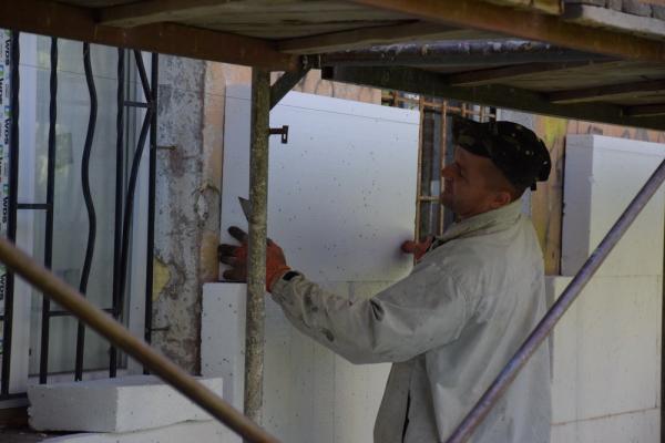 Наразі ремонтують фасад будівлі. Далі перейдуть до ремонту внутрішніх приміщень.