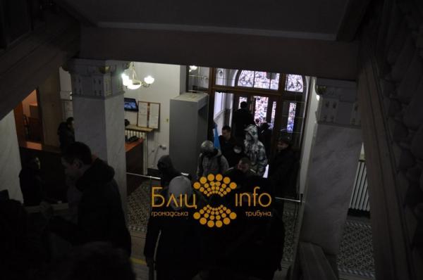 Колона активістів зайшла в приміщення будівлі міського суду без проблем. Сам начальник охорони суду впустив майданівців всередину, однак нікого з працівників суду в будівлі не було.