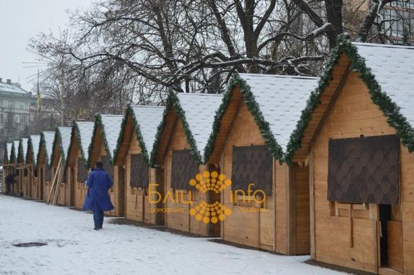 Організатори вирішили влаштувати ярмарок на кшталт "європейського". Для цього в центрі міста нещодавно спорудили будиночки. А сьогодні взялись їх прикрашати.