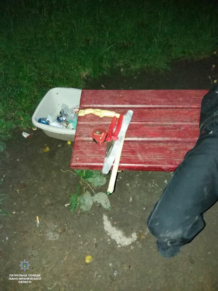 На підставі статті 34 ЗУ "Про Національну поліцію" патрульні почали проводити поверхневу перевірку. В цей час з під`їзду вибіг ще один чоловік. при собі він мав шуроповерт, газовий балончик, ручку від вікна й інші інструменти.
