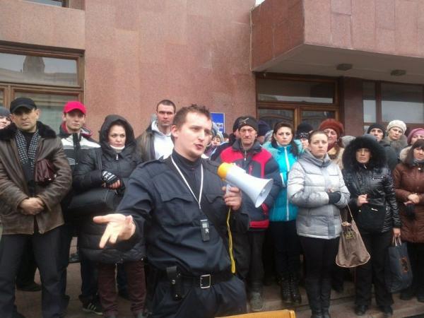 До підприємців вийшли заступники міського голови Зіновій Фітель, Руслан Панасюк, секретар міськради Микола Вітенко та міліціонери, повідомляє кореспондент «Бліц-Інфо».