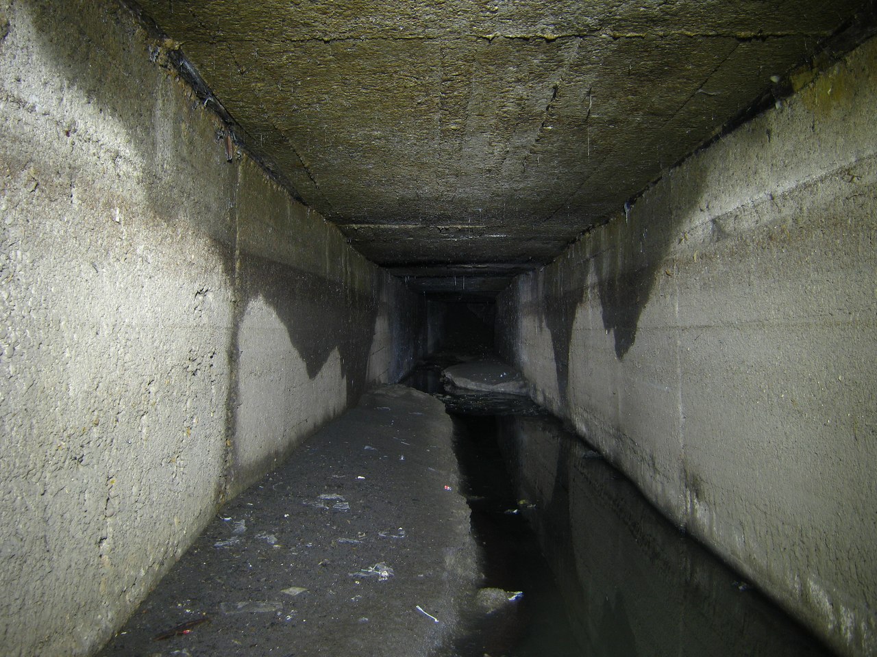 Колектор на третину замулений і приходиться йти зігнувшись. Пройшовши певну відстань – можна побачити, що колектор закінчується переходячи в трубу, приблизно, метрового діаметру.