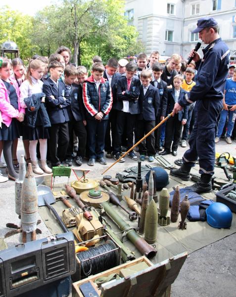 Діти ознайомилися з технікою, яка є на озброєнні у рятувальників, з великою цікавістю розглядали спорядження, з допомогою якого рятувальники надають допомогу людям на воді, у горах, під час гасіння пожеж та у випадку виявлення вибухонебезпечних предметів. У ході зустрічі у школярів виникало багато запитань, на які рятувальники давали вичерпні відповіді.