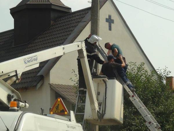 Як з’ясувалося, на електричній опорі, зачеплений за страхувальний пояс на висоті 3 метрів, висів чоловік.