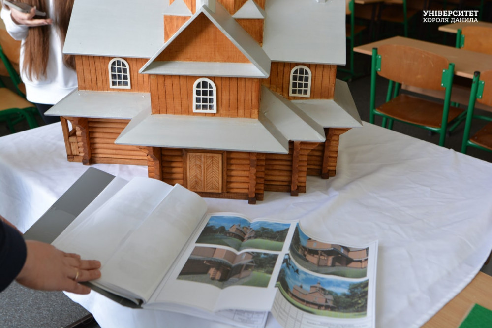 Один із справді вражаючих проєктів – дерев’яний макет церкви, який зробила студентка 4-курсу спеціальності «Архітектура та містобудування» Тетяна Ілійчук. Дівчина розповідає, що створювала його майже місяць і їй в такій масштабній роботі допомагав батько.