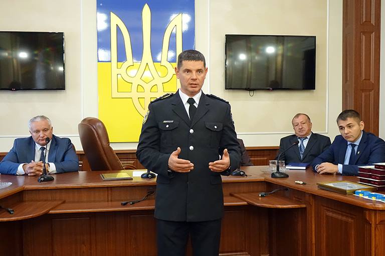 В актовому залі Головного управління зібралися поліцейські на чолі з керівництвом, представниками влади і спілками, інформує Бліц-Інфо з посиланням на прес-службу Нацполіції в області.