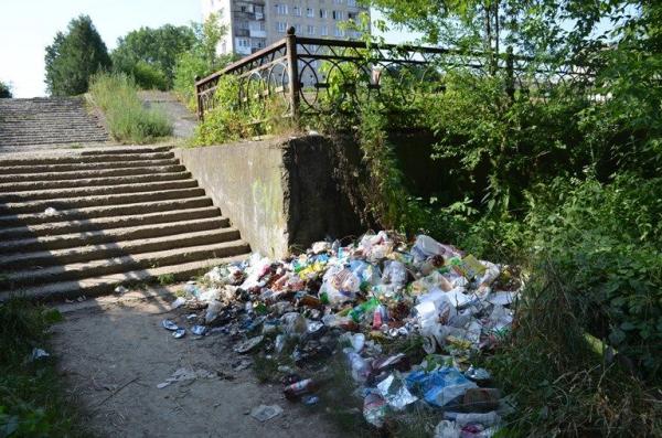 Територія вздовж річки, що на вул. Набережна, захаращена горами сміття. Особливо вздовж дамби та біля мостів. Вочевидь, франківчани "вдало" відсвяткували вчорашній день Івана Купала.