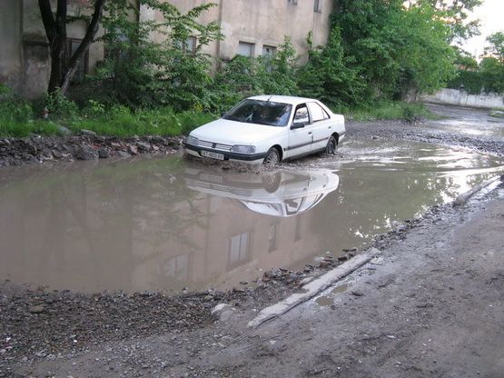 Таксисти на Промислову й носа не показують! Бо ж на весь цей «діловий» кілометр – ані квадратного метра асфальту! Без перебільшення. Його тут просто нема. Третина «дороги» замощена розбитими бетонними плитами, все інше – рови, у ліпшому разі трохи підсипані щебенем. Оце тотальне бездоріжжя місцеві й прозвали танкодромом. Тим паче, що під час дощів на всю ширину проїжджої частини у тих ровах розливаються «озера». Шансів об’їхати – нуль. Глибина – інколи з ціле колесо легковика. Втім, автомобільний рух тут більш ніж інтенсивний. Кожного робочого дня вулицею до заводів проїжджають кілька десятків фур, ще більше вантажівок, легковики годі й рахувати. У дощ місцеві мешканці потерпають від непролазного болота, в літню спеку – від хмар пилу.