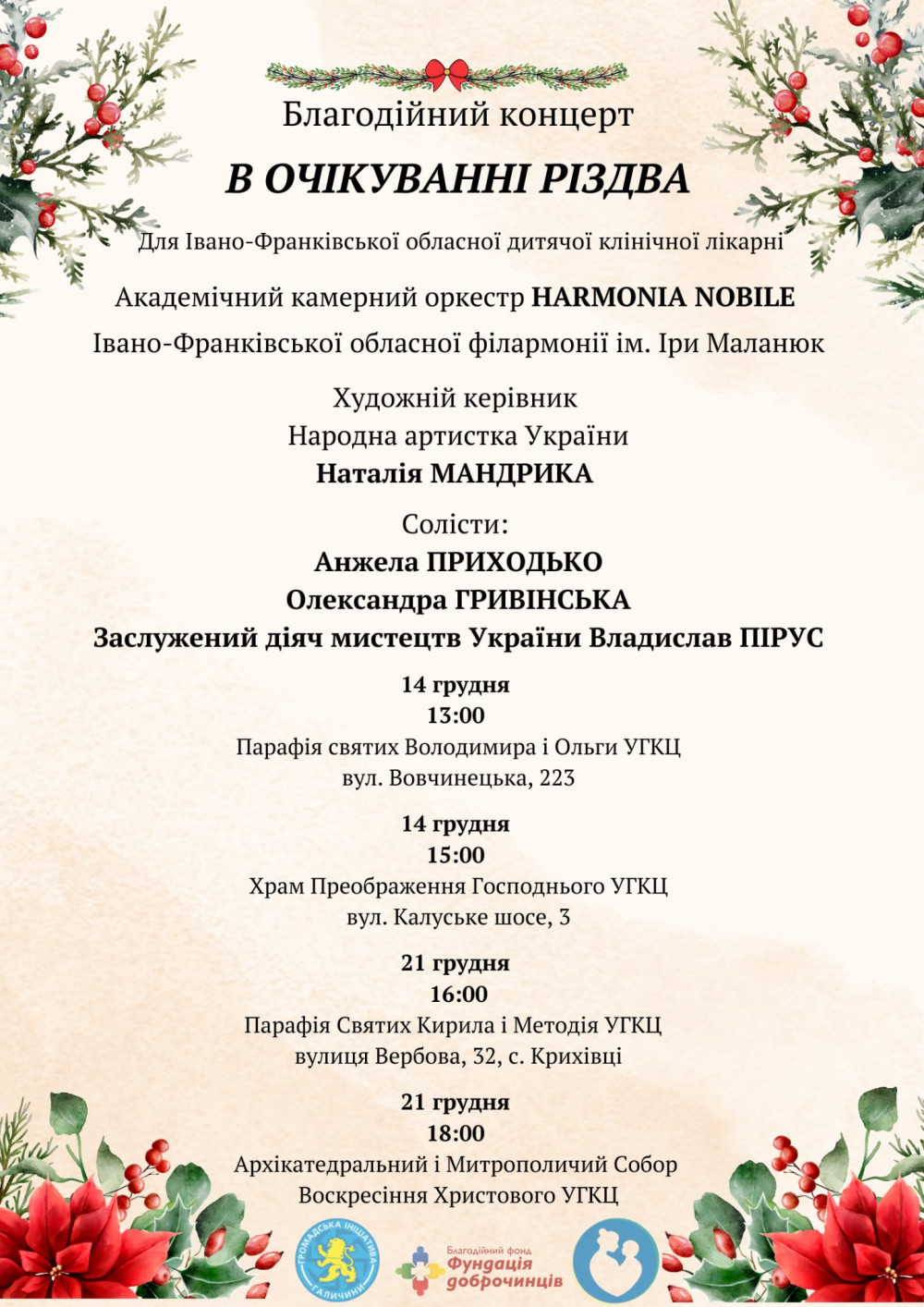 Франківців запрошують на благодійні концерти “В очікуванні Різдва” на підтримку обласної дитлікарні