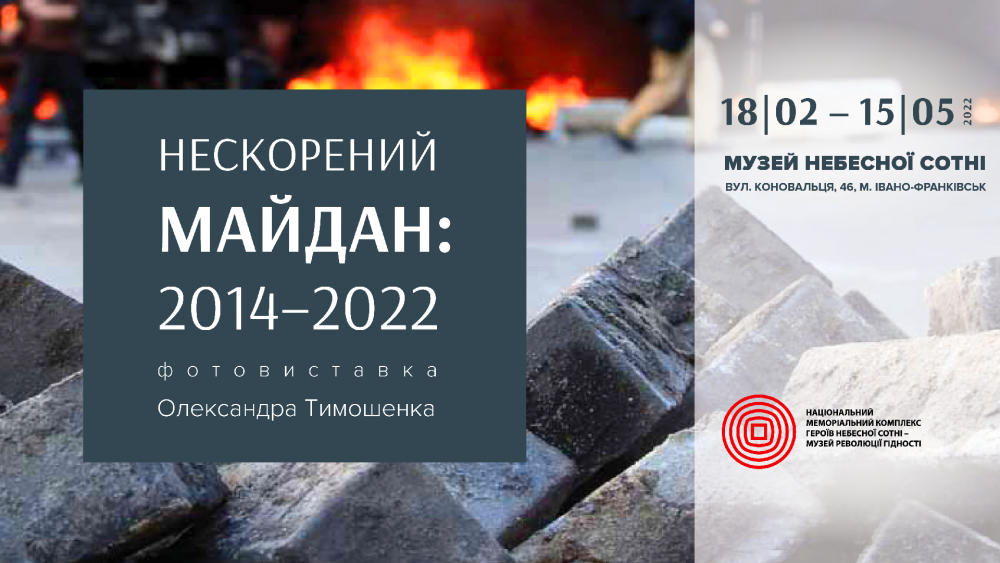 18 лютого о 15:00 в Музеї Небесної Сотні в Івано-Франківську відкриється фотовиставка "Нескорений Майдан: 2014–2022" київського фотохудожника, журналіста, безпосереднього учасника Революції Гідності Олександра Тимошенка.