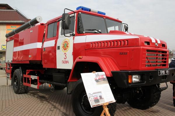 У Галичі відбулося урочисте вручення нової пожежної техніки. Зокрема, автопарк галицьких рятувальників поповнився ще одним пожежним автомобілем – автоцистерною АЦ-5-40 на базі шасі КрАЗ-5233Н.