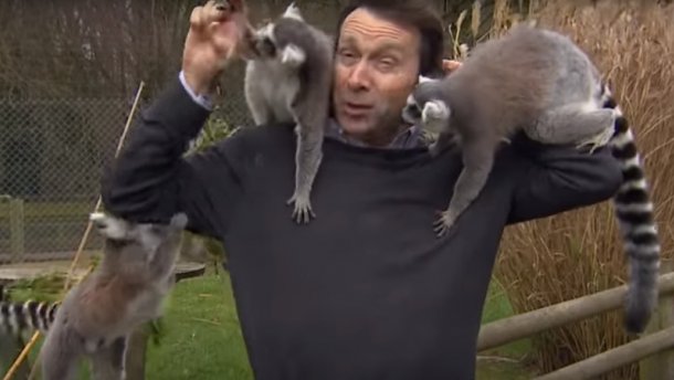 Записати стендап він захотів у компанії лемурів, але тваринам було набагато цікавіше стрибати по чоловікові, ніж спокійно позувати поруч з ним.