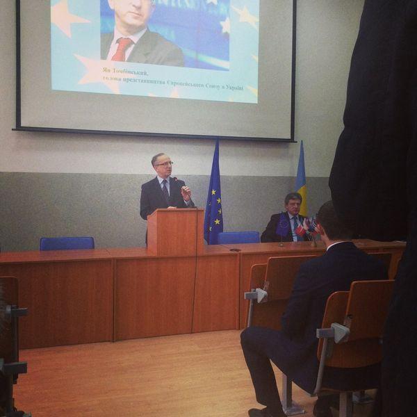 Ян Томбінський, голова представництва Європейського Союзу в Україні, відвідав відкриття інформаційного центру ЄС на базі ПНУ а також провів лекцію для студентів на тему "Асоціація ЄС та України".