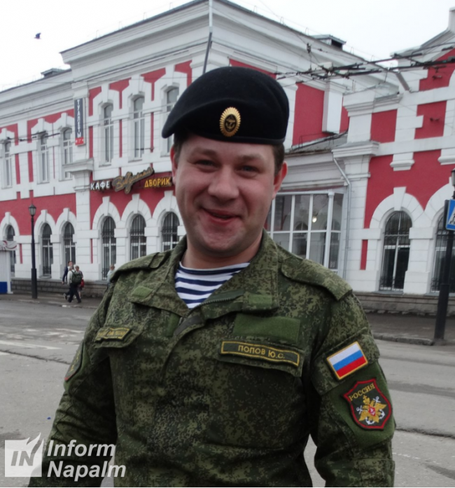 Ним виявився Попов Юрій Сергійович, 21 червня 1985 року року народження; паспорт 1906 458786; зареєстрований: м Вологда, вул. Набережна 6-ий армії, 207А, кв 13; військовослужбовець за контрактом, матрос, в/ч номер 74777 (99 тактична група Північного флоту, Новосибірські острови, острів Котельний); особистий номер ЕХ-616099; табельний номер по фінансовій частині: 1973598; адреса електронної пошти: asatru35@mail.ru; віддалений профіль у соціальній мережі за посиланням.
