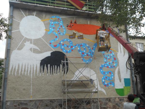 Потрібна була нова локація для зображення малюнків, цю ідею підтримав головний лікар Івано-Франківська Тарас Масляк. Таким чином художники вирішили розмалювати стіну міської дитячої клінічної лікарні”, – розповідає волонтер проекту Катерина Масляк.