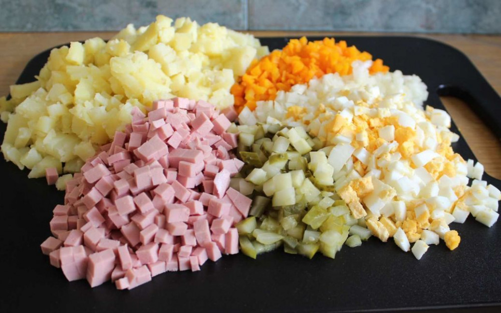 Також аналітики підрахували, скільки коштуватиме приготувати на сім'ю 3 кг олів'є за класичним рецептом. Для нього потрібні картопля, морква, яйця, огірки свіжі або квашені, консервований горошок, варена ковбаса, цибуля, зелень та майонез.