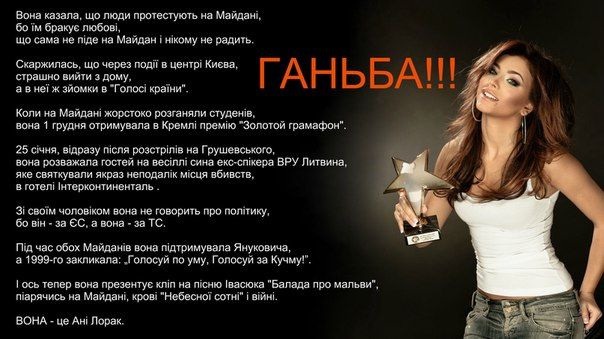 У Тернополі, де концерт Ані Лорак запланований на 29 травня, противники столичної співачки вирішили розмалювати її рекламні щити на вулицях міста. Жовтими фарбами невідомі написали: «Ганьба» та «Ворог Майдану». А в коментарях до світлини, яку поширили в соцмережах, люди пропонують закидати зірку яйцями.