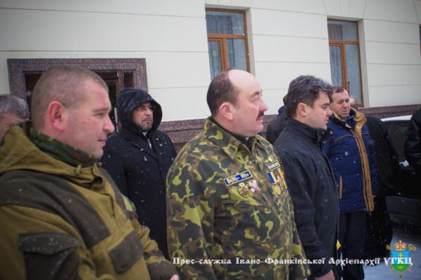 Сьогодні Митрополит Володимир освятив автівку на подвір'ї Архієпархіального управління, у присутності отців-протопресвітерів, волонтерів ГО «Самооборони» (м. Івано-Франківськ) та власне бійців АТО, які вже завтра повезуть його на територію бойових дій.