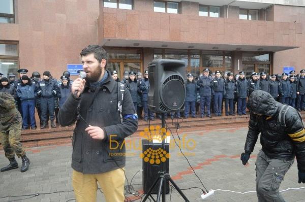 Після 40-хвилинного скандування під облдержадміністрацією, де протестувальники вимагали підтримати асоціацію з ЄС, один із організаторів наметового містечка Максим Кицюк закликав учасників протесту повернутись до Вічевого майдану. А саме, для продовження безтрокової акції на підпримку підписання асоціації з ЄС.